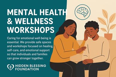 Caring for emotional well-being is essential for thriving communities. Our Mental Health & Wellness Workshops provide safe and supportive spaces where individuals can learn practical strategies for stress management, self-care, and resilience. We partner with licensed professionals and community advocates to host workshops, group discussions, and healing sessions that address topics such as trauma, anxiety, and emotional balance. By promoting mental wellness, we empower individuals and families to break cycles of hardship and build stronger, healthier futures together.